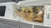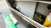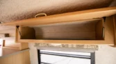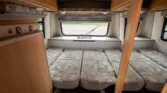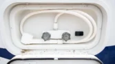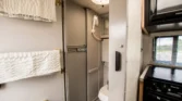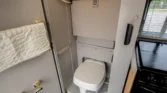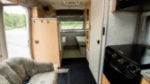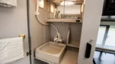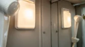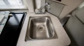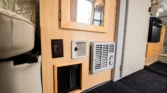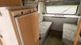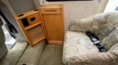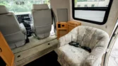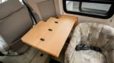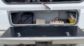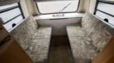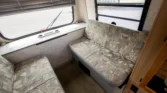 Additional amenities include a rear dining table and bench seats that convert to a bed as well as a wardrobe for clothing storage and tanks for fresh water, sewage, and propane. The hour meter on the 2,800-watt generator reads approximately 56 hours.