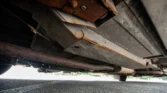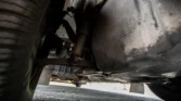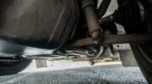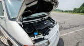 Steel 16″ wheels wear full covers and are mounted with 205/60 Vredestein Quatrac tires that show 2024 date codes. The rear axle is fitted with auxiliary air springs.