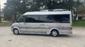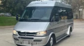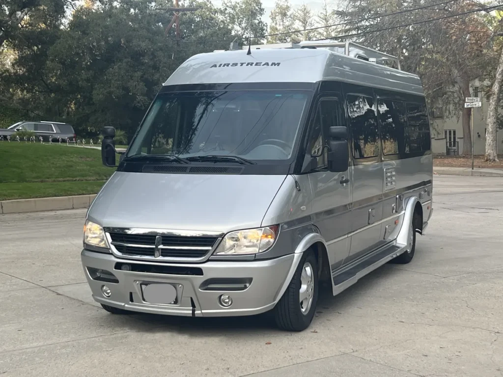 This Airstream Interstate 22 RD motorhome was built on a 2006 DaimlerChrysler Dodge Sprinter 2500 chassis, and the floor plan features a kitchenette, a wet bath, and a rear dinette with a table and a folding sofa. Equipment includes an awning, an onboard generator, a rooftop air conditioner, and a flatscreen television. Power is from a 2.7-liter turbodiesel inline-five…